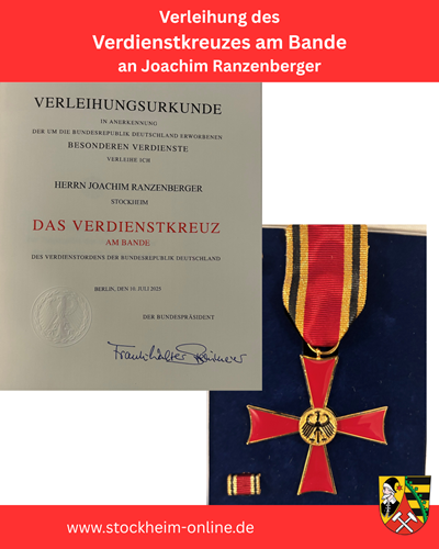 Auch wir als Gemeinde Stockheim sind sehr stolz auf unseren Würdenträger und danken Joachim Ranzenberger von Herzen für seinen unermüdlichen Einsatz und seine außergewöhnliche Vorbildfunktion.
