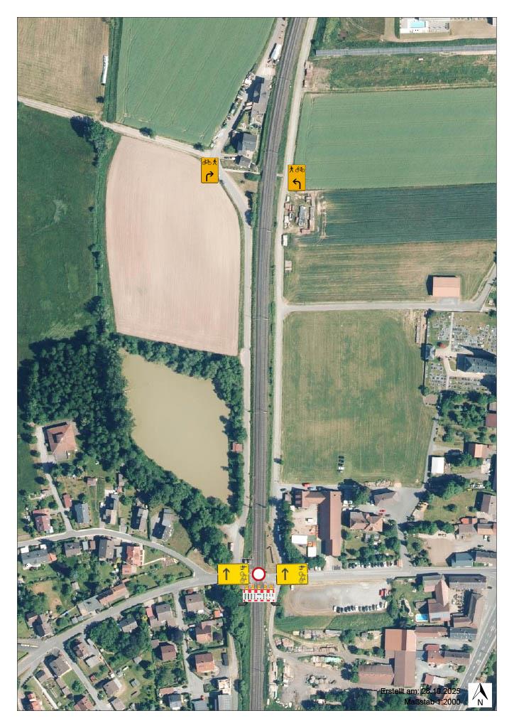 Schilderplan Sperrung Bahnübergang Am Schwarzenbach